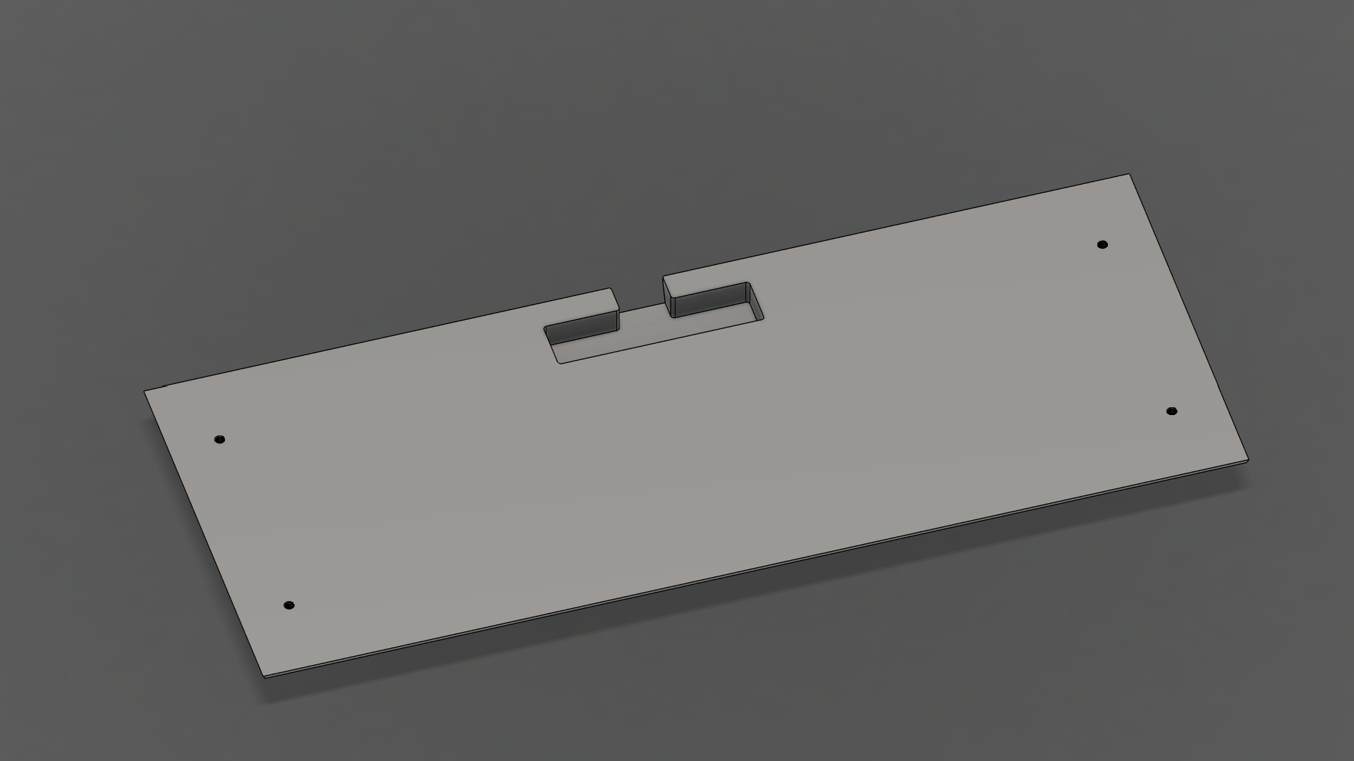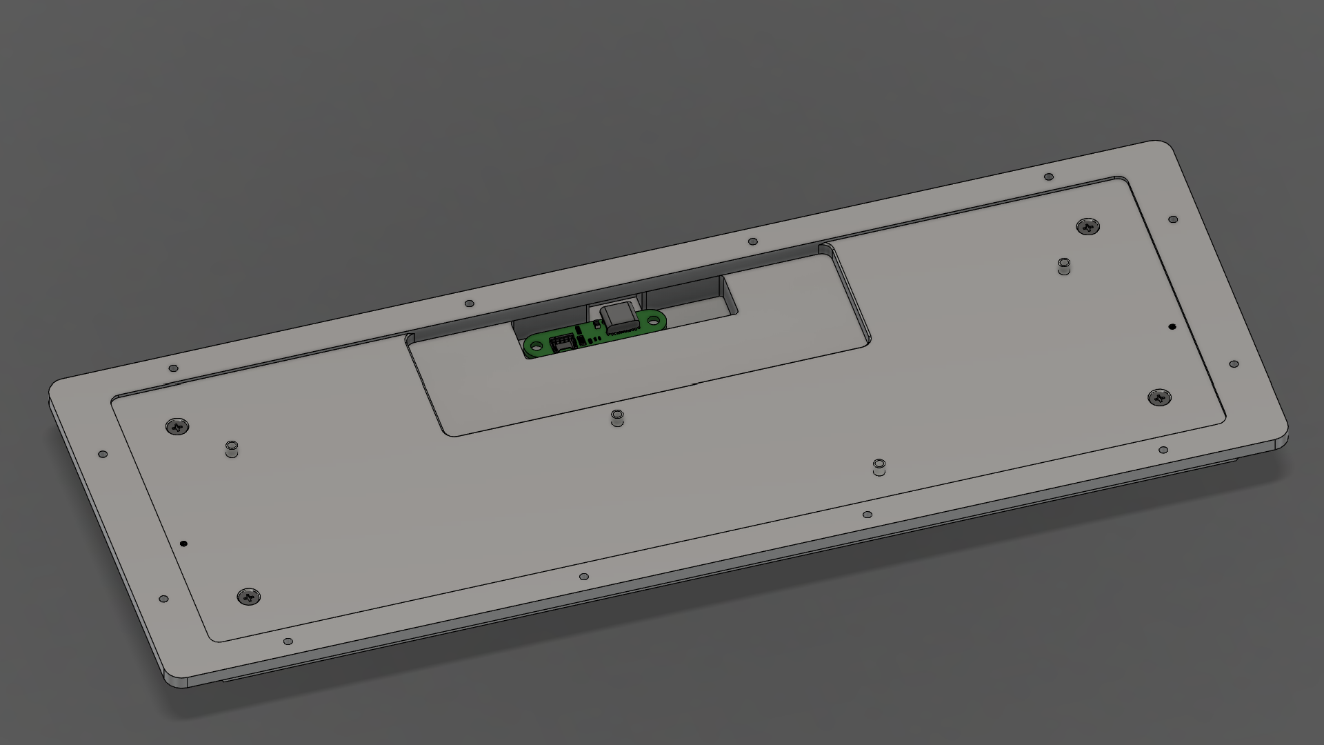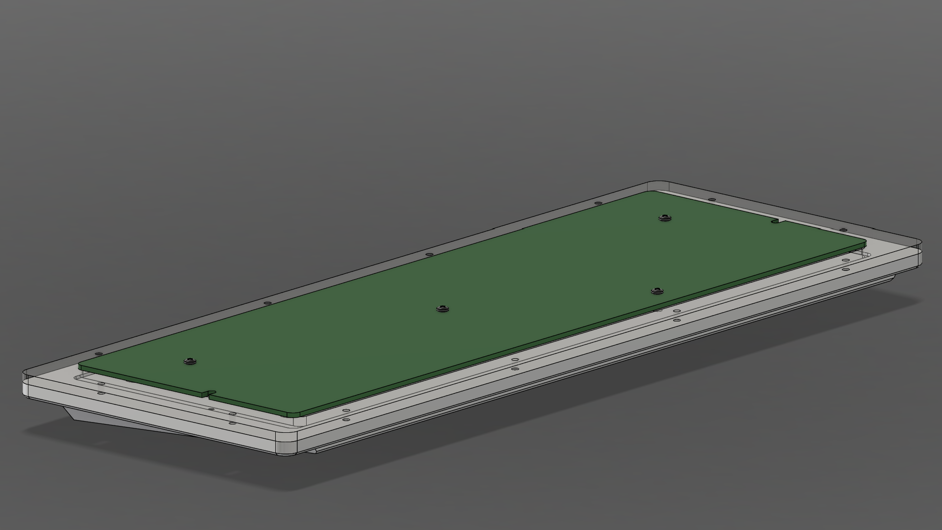 Note the overhang lip on the shorter side: the PCB sits on this surface. In the middle, the PCB is held up by with spacers.