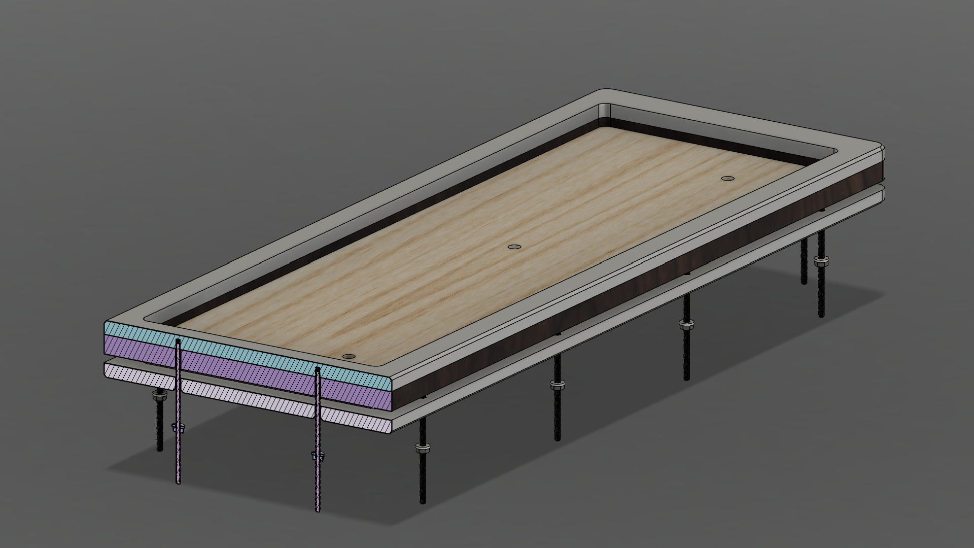 Wet leather pieces in the shape of the case are then fit between the top and bottom plate and compressed using threaded rods, washers and bolts. It is important to ensure that the leather is uniformly compressed.